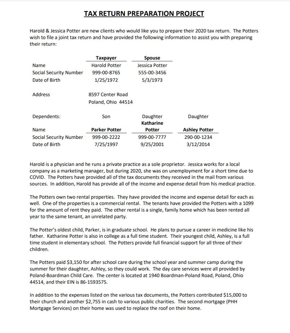 I Need To Prepare The 2020 Federal Income Tax For The Chegg Com